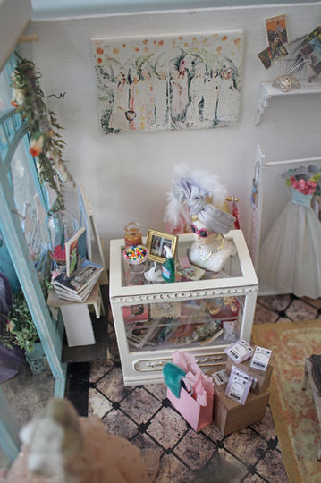 From the shop’s Yankee candle, to its delicate handwritten price tags, L. Delaney set out to faithfully recreate the boutique’s lush details in 1-inch scale.